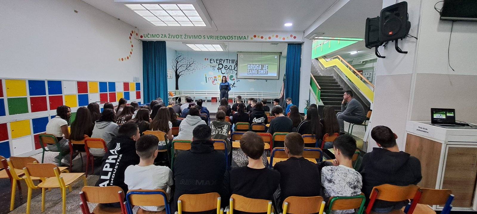 U utorak, 24.3 2026.godine u saradnji s Ministarstvom unutrašnjih poslova, Policijska uprava Novo Sarajevo, za učenike VI, VII, VIII i IX razreda realizovala je edukacija na temu “Stop upotrebi psihoaktivnih supstanci”.