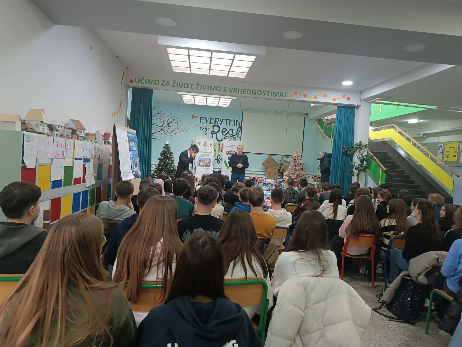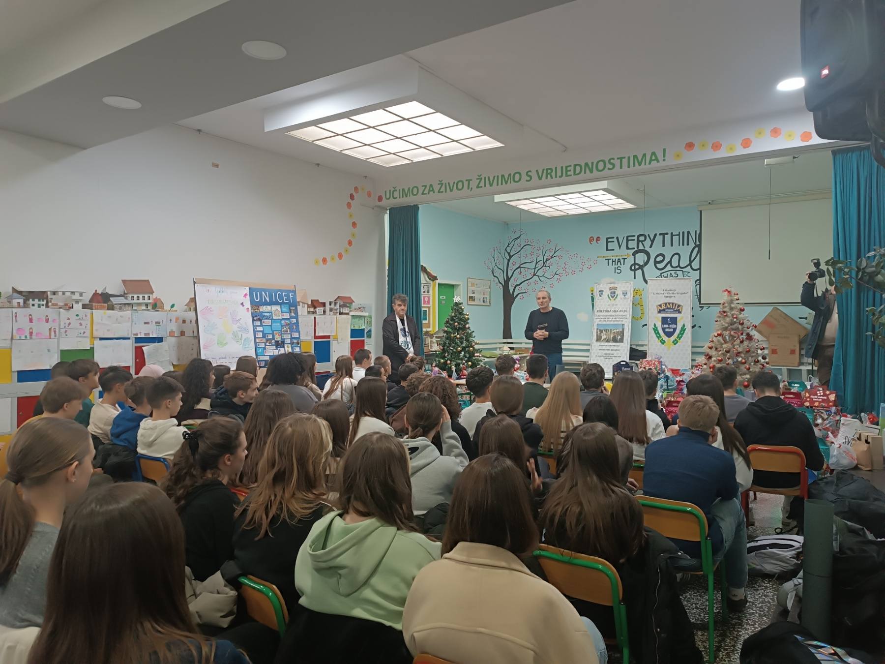 U saradnji s Općinom Novo Sarajevo, u holu naše škole održan je historijski čas za učenike devetog razreda, naše maturante. Za učenike osmog razreda predavanje je održano 3. 12. 2025. godine.