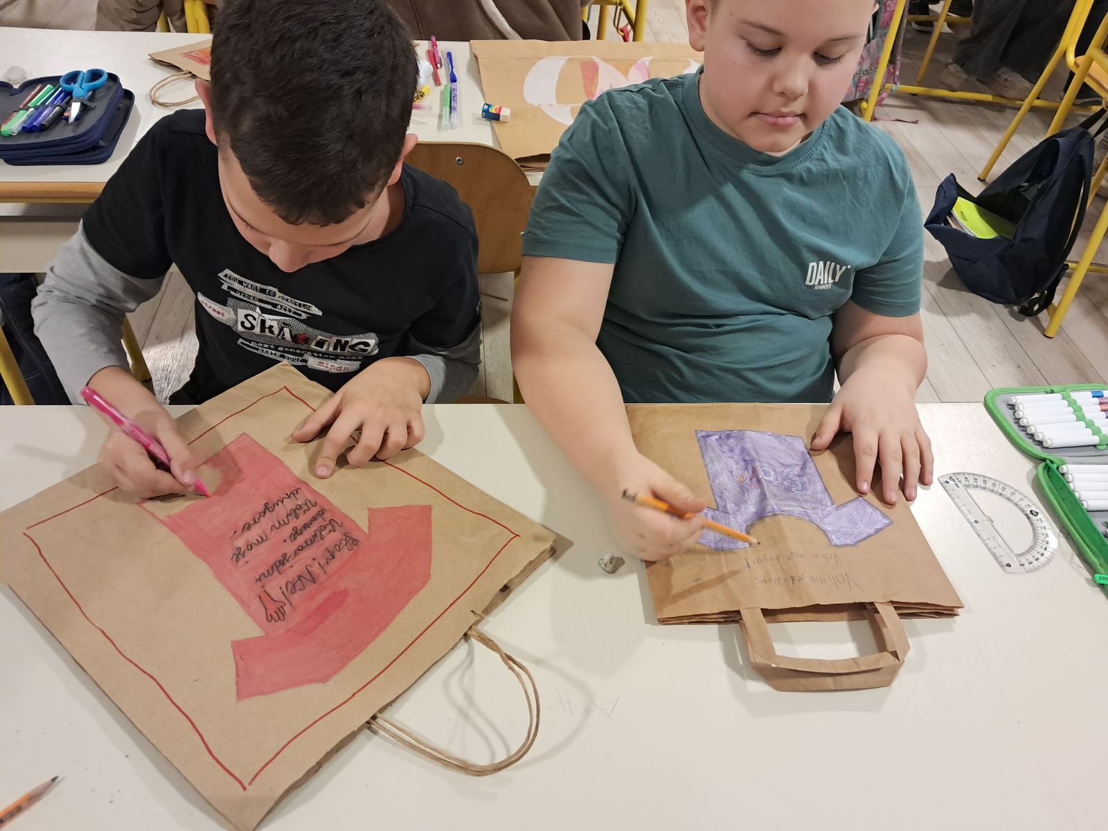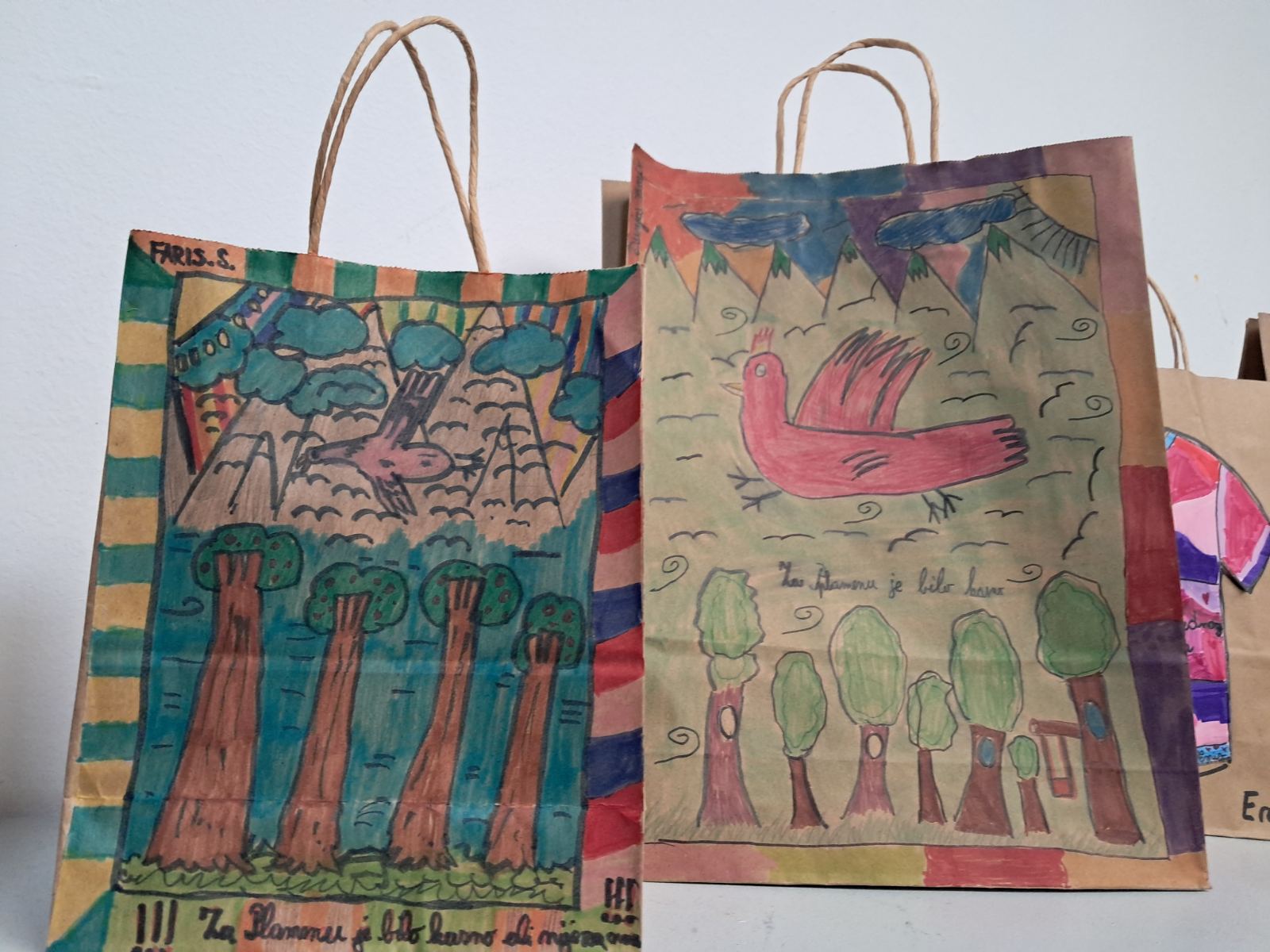 Kroz likovnu radionicu “Kaži ne nasilju”, izradu i oslikavanje ukrasnih vrećica sa porukom nenasilja i empatije, izradom likovnih radova sa porukom nenasilja među djecom, postavljanjem panoa i plakata sa porukama, učenici III- 4 obilježili su mjesec borbe protiv vršnjačkog nasilja..