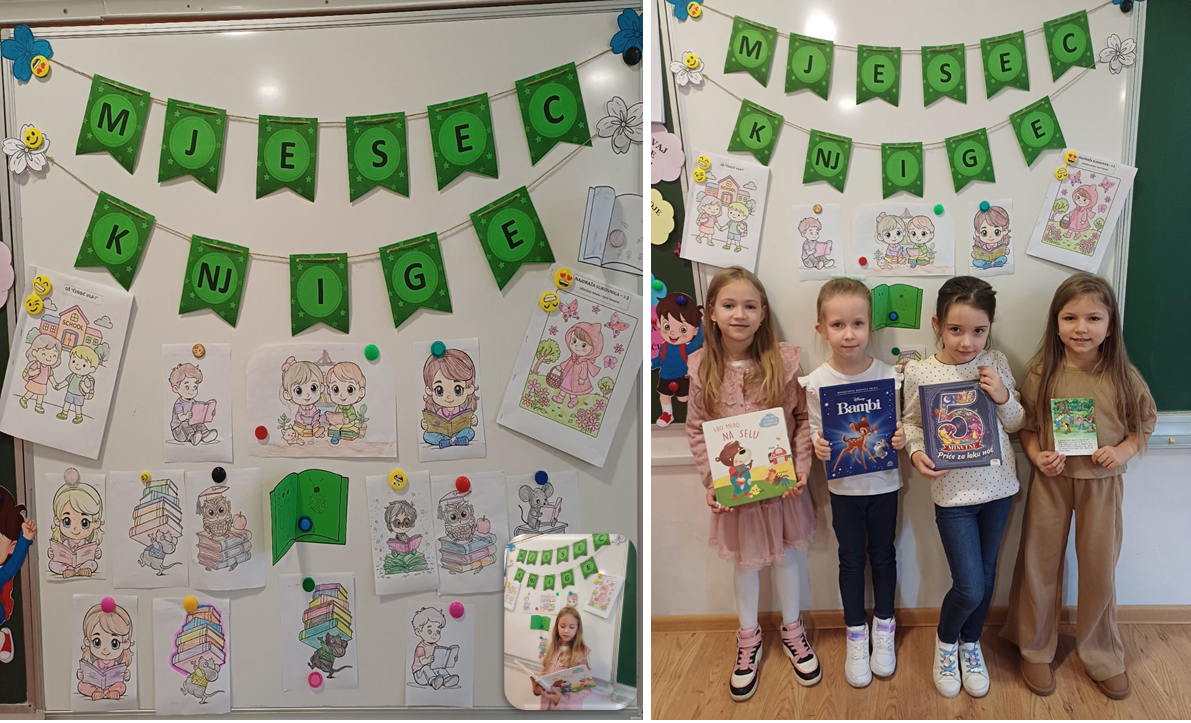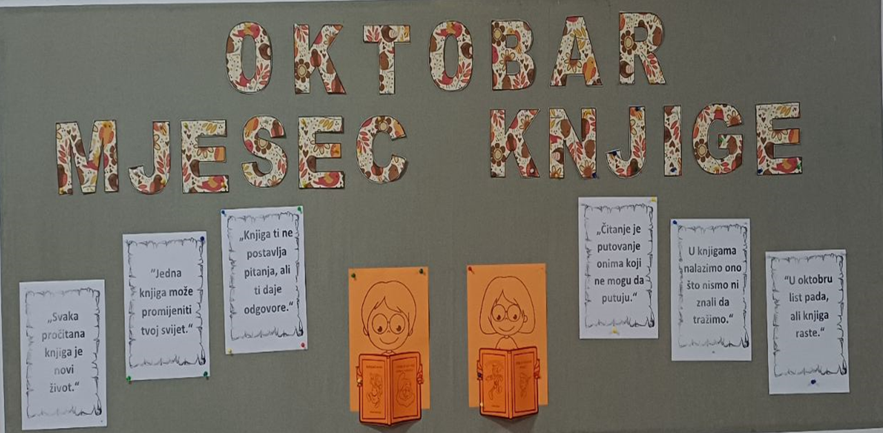 Učenici i učenice od I do IV razreda naše škole zajedno sa svojim učiteljicama obilježili su Oktobar – mjesec knjige kroz niz zanimljivih i kreativnih aktivnosti. Zajedno su uredili pano u holu škole i učionicama koji su ispunili crtežima, citatima i porukama o važnosti knjige i čitanja.