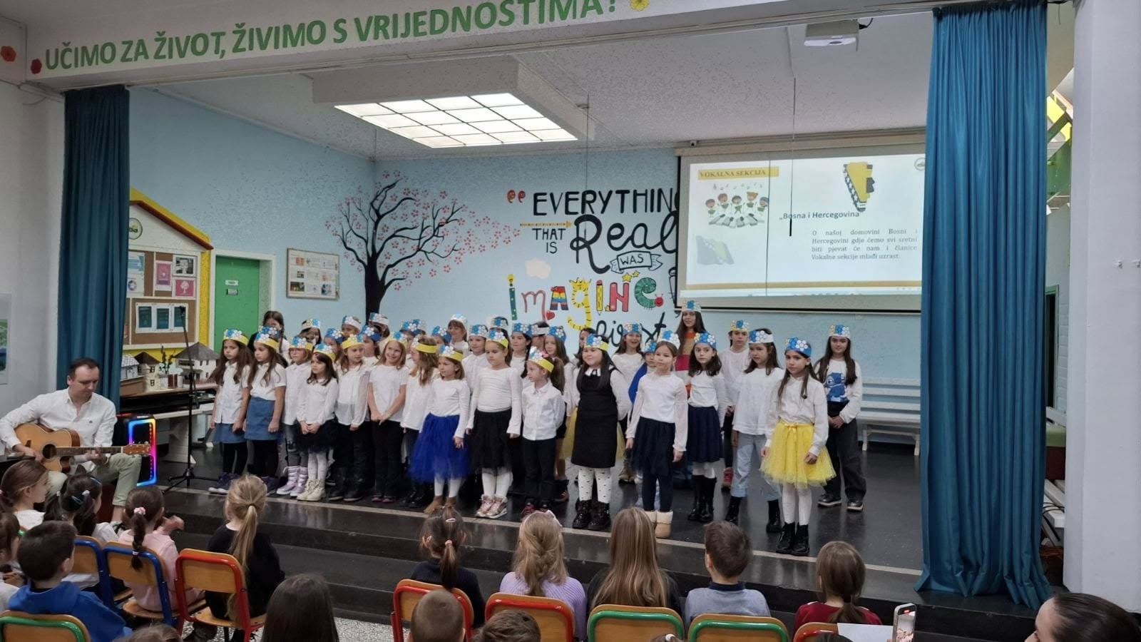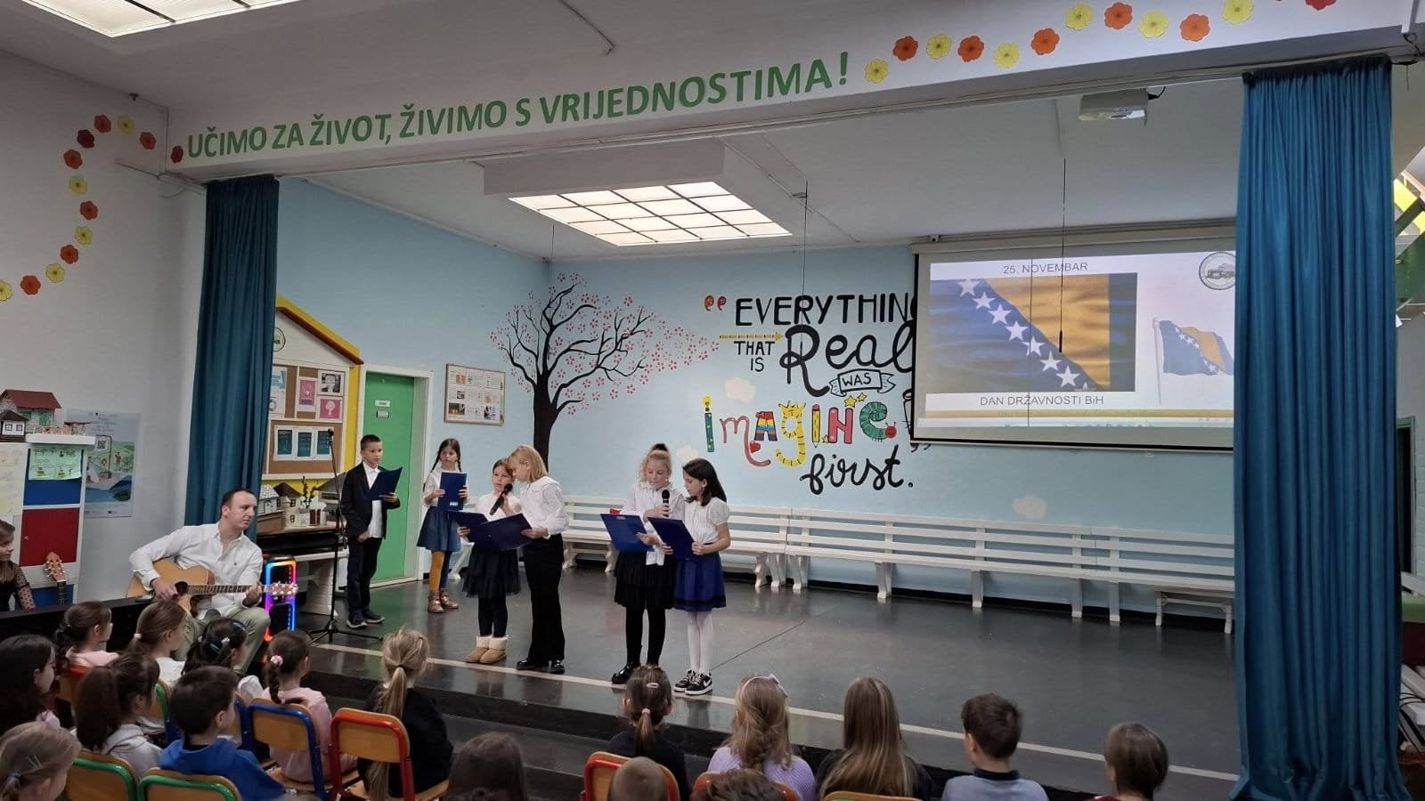 U holu naše škole održane su dvije priredbe povodom Dana državnosti. Kroz pjesmu, glumu, govore i recitaciju učenici i učenice izrazili su svoju ljubav prema domovini i istakli važnost ovog datuma u historiji Bosne i Hercegovine. Svim učenicima, roditeljima, uposlenicima i prijateljima naše škole želimo sretan Dan državnosti!